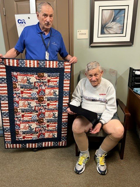 Through our partnership with the We Honor Veterans program, servicemen like Dave are recognized for their sacrifices. Earlier this spring, Hosparus Health volunteer Hugh Walker, an Army veteran himself, presented Dave with a commemorative certificate and a handmade prayer blanket.