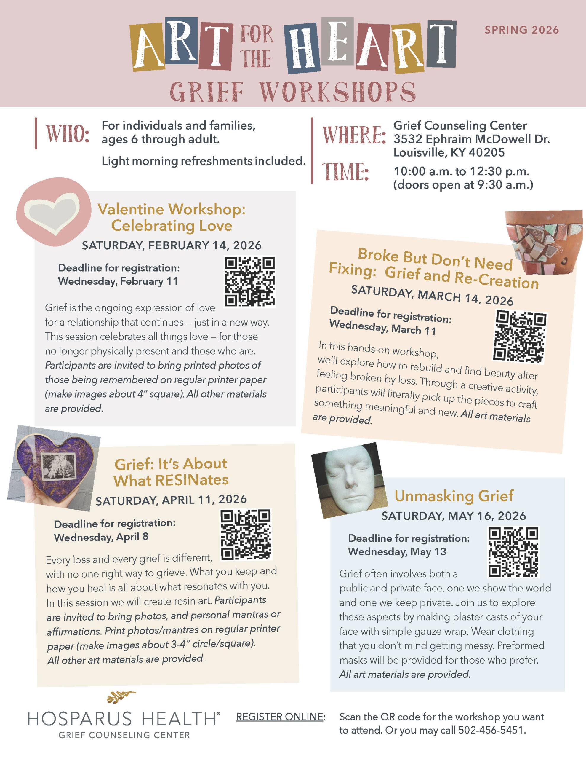 Register online here for the workshop you want to attend. Or you may call 502-456-5451.